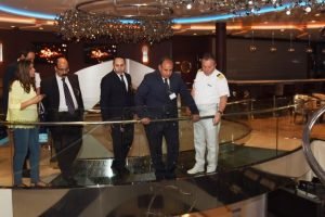 عقب ذلك، قام سلطان يرافقه اللواء مدحت عطية رئيس هيئة ميناء الإسكندرية، والأستاذ أسامة الخولي وكيل وزارة السياحة بالإسكندرية وقبطان السفينة، بجولة قصيرة على ظهر السفينة ، والتي تشمل العديد من الأماكن ؛ أهمها الجزء الترفيهي وجزء التسوق والسينما والمسرح الذي يحتوى على ١٠٠٠ كرسي و الجزء الخاص بالاستوديو المجهز بأحدث معدات البعد السابع والمطاعم.