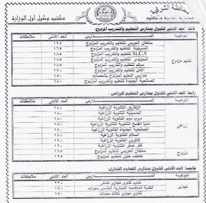 وأضاف أن محافظ الشرقية إعتمد تنسيق القبول بالمرحلة الثانوية للتعليم الفني للعام الدراسي 2017/2018 وتقرر أن يكون الحد الأدنى لكل نوعية من نوعيات التعليم الفني (صناعي – زراعي – تجاري ) ومدارس التعليم والتدريب المزدوج كالأتي :-