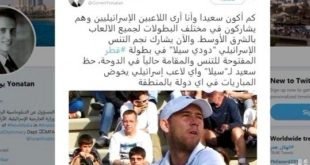 كتبت::سماح رضا بحسب صحيفة يديعوت أحرونوت كشفت عن أهمية هذه الخطوة والأهم من هذا موافقة الدوحة على استضافة اللاعبين الإسرائيليين، في خطوة مهمة للغاية بذلك الوقت الحساس . وقال المسؤول عن الدبلوماسية الرقمية بالعربية في وزارة الخارجية الإسرائيلية يوناتان جونين، في تغريدة له وضعها أول من أمس، عبر حسابه على …