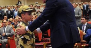 كتبت//سماح رضا صافح الرئيس عبد الفتاح السيسي، الطفل “حمزة”- ابن الشهيد العقيد أركان حرب أحمد المنسي، قائد الكتيبة 103 صاعقة فى شمال سيناء، خلال الندوة التثقيفية الـ26 للقوات المسلحة، وقبَّل رأسه. وقد أدى “حمزة”، التحية العسكرية للرئيس عبد الفتاح السيسي خلال الندوة. يذكر أن الرئيس يشهد الندوة التثقيفية للقوات المسلحة …