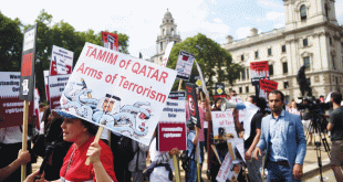 كتبت//سماح رضا نظم مئات البريطانيين والأوروبيين والعرب ونشطاء السلام، ، وقفة احتجاجية أمام مبنى البرلمان البريطاني بميدان ويستمينستر وسط لندن، على زيارة أمير الإرهاب القطري تميم بن حمد إلى بريطانيا. وأكد المحتجون انهم سيكشفون للرأي العام الدولي في مؤتمرات مقبلة حجم الانتهاكات التى تُمارس ضد اصحاب الآراء الحرة والمعارضين للنظام …