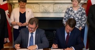 كتبت // سماح رضا كانت قد وقعت رئيسة الحكومة البريطانية تيريزا ماي اتفاقا الاثنين لتشكيل حكومة مع الحزب الوحدوي الديموقراطي الايرلندي الشمالي بعد ثلاثة اسابيع تقريبا على انتخابات تشريعية فقدت خلالها الغالبية المطلقة التي كانت تملكها في مجلس العموم. وصرح متحدث باسم الحكومة لوكالة فرانس برس “تم توقيع اتفاق”. وكانت …