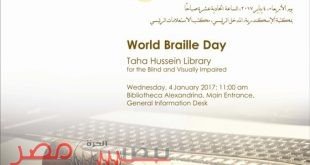 كتب/عادل خليف تنظم مكتبة طه حسين للمكفوفين وضعاف البصر بمكتبة الإسكندرية معرضا يتضمن مختارات من الكتب والأدوات بطريقة البرايل، وذلك في الفترة من 2 حتي 5 يناير الجاري، في مكتب الإستعلامات الرئيسي بالمكتبة. ويأتي هذا المعرض بالتزامن مع الاحتفال باليوم العالمي للبرايل، والذي يوافق 4 يناير، وسوف تتضمن فقرات المعرض …